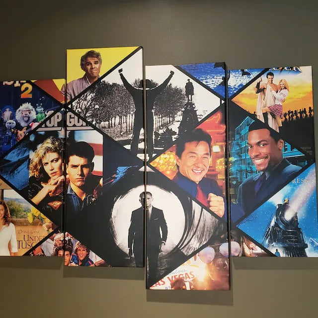 Movie Collage Wall Art Framed, Classic Movie Or TV Show Canvas Poster, Customize Any Image/ Home Decor 5 Panel Prints