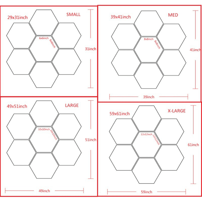 Here is the different sizes we have. Framed 7 Piece Design.